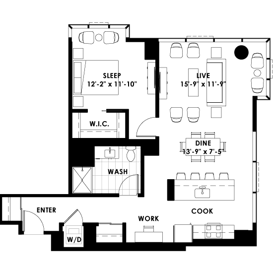 All plans and renderings are artist’s renderings for illustrative purposes only and may not be to scale. All dimensions and distances are approximate and may vary. All photos and views are approximate representations only. Actual product and specifications may vary and are subject to change. Not all features are available in every apartment. Prices and availability are subject to change without notice. Please see a representative for details. *Offers available on select apartments—contact the leasing office for details.
